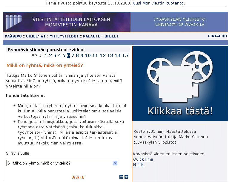 Vanha Moniviestin - ohjelmanäkymä
